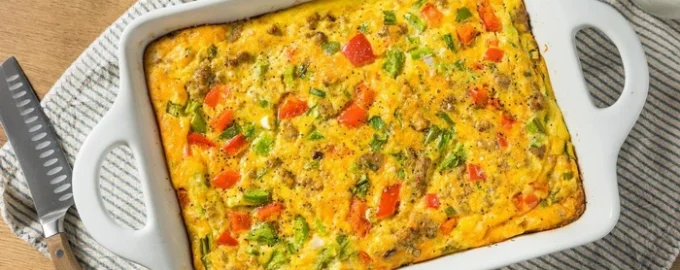 تيار ڪرڻ لاء، توهان کي ڪنهن به سسج يا هيم، انڊا، اٽو، بيڪنگ پائوڊر، مکڻ، گھنٽي مرچ، سائي پياز، مصالحو ۽ هڪ بيڪنگ ڊش جي ضرورت پوندي.