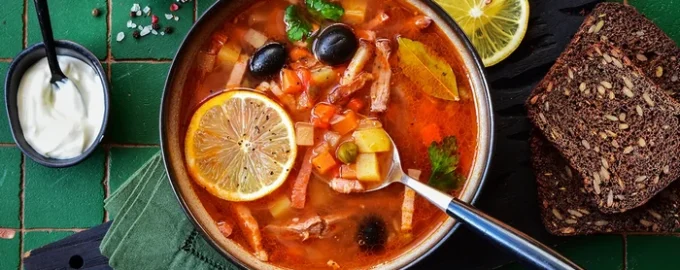گوشت solyanka – تماڪ ٿيل گوشت سان ترڪيب